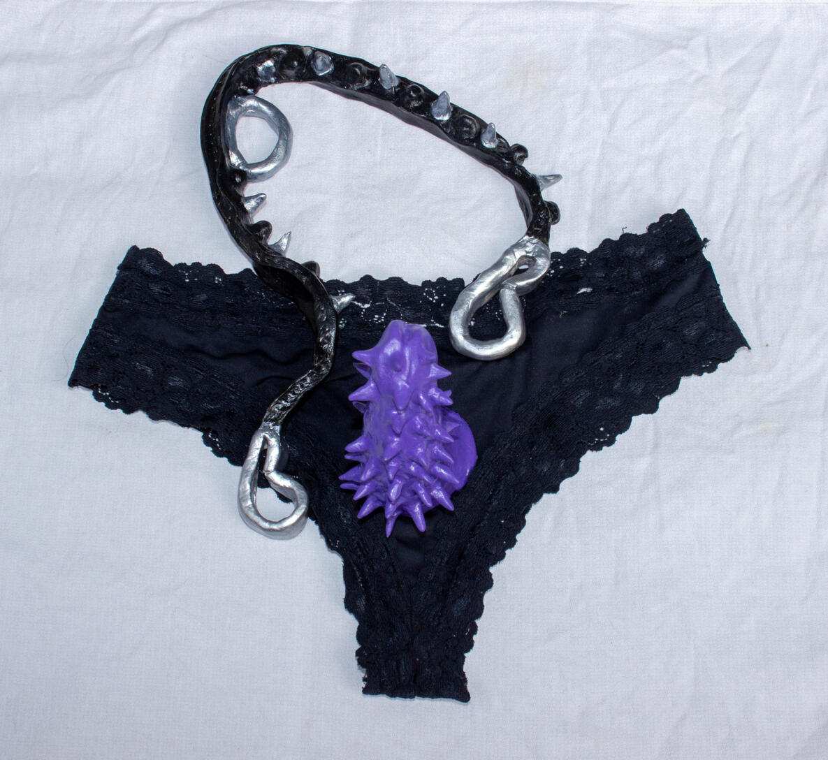 This erupts in a euphoric escape, capturing a community driven through connection. Abandoned buildings fuelled by illegal techno raves, open drug policies, and even more open dance floors. You could come as you are yet leave with an entirely new identity attached. A private space to feel the allure of connection, there’s a sense of ease and comfort here – a feeling you haven’t felt in some time. You surrender to it and let it in, allowing it to encapsulate you piece by piece. Oj's creations serve as a portal, offering viewers a unique journey into the playful, dark, and emotionally intricate realm of raves. Each encounter with her work is an intimate and multifaceted experience.OJ's work focuses on sustainability by utilizing pre-existing materials and repurposing them into unique art pieces. Incorporating old magazines, plastics, glass bottles, trinkets and other discarded items.